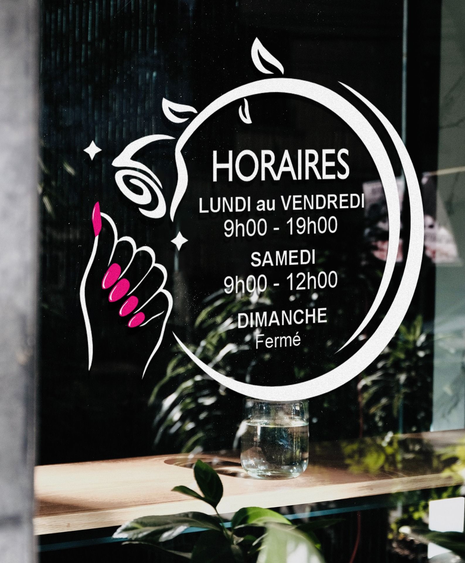 Sticker horaire vitrine , manicure, soin, beauté